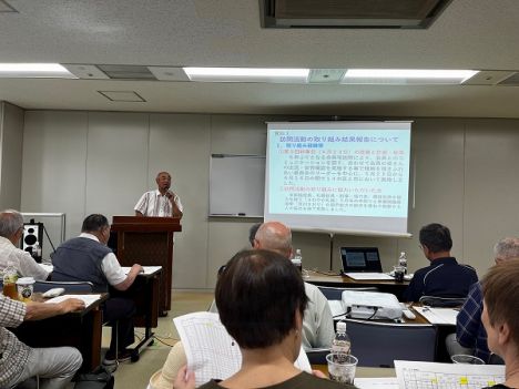 佐野会長からは、6年振りに実施したふれあい活動の振り返りにふれ、役員・幹事で会員宅へ久々に訪問、笑顔を確認できた。なお、今回のふれあい活動には、役員、幹事の他に一般会員の方にもお手伝い頂いた。一方、参院選結果は、危惧されていた吉川さおりは、票を伸ばし当選を得た。今後も、我々の掲げる医療、介護、年金の3本柱を守るため政治に訴求してゆきたい。と述べた。